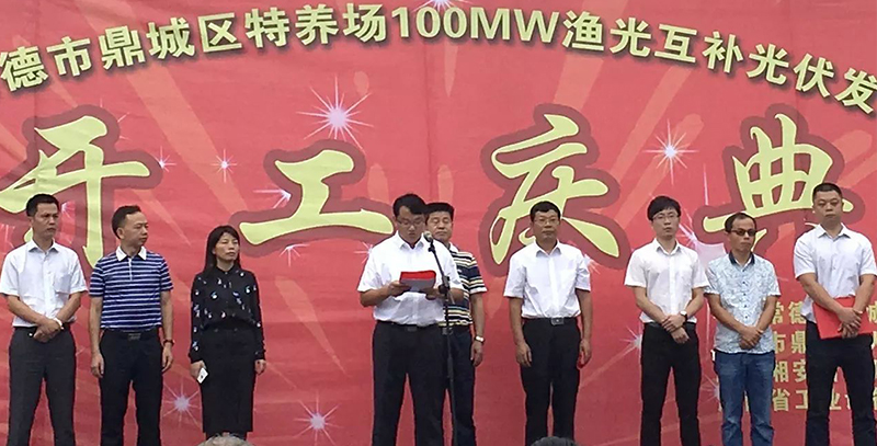 2017年9月29日10點58分,常德市鼎城區(qū)特養(yǎng)場100MW漁光互補光伏發(fā)電項目開工儀式在特養(yǎng)場項目地正式舉行。鼎城區(qū)人大常委會副主任李潤初、區(qū)人民政府副區(qū)長熊輝、區(qū)政協(xié)副主席胡小芳及各職能部門領(lǐng)導,湖南湘安新能源科技有限公司董事長呂云華、副總經(jīng)理劉文彬、張羚羚及項目相關(guān)領(lǐng)導等出席儀式。