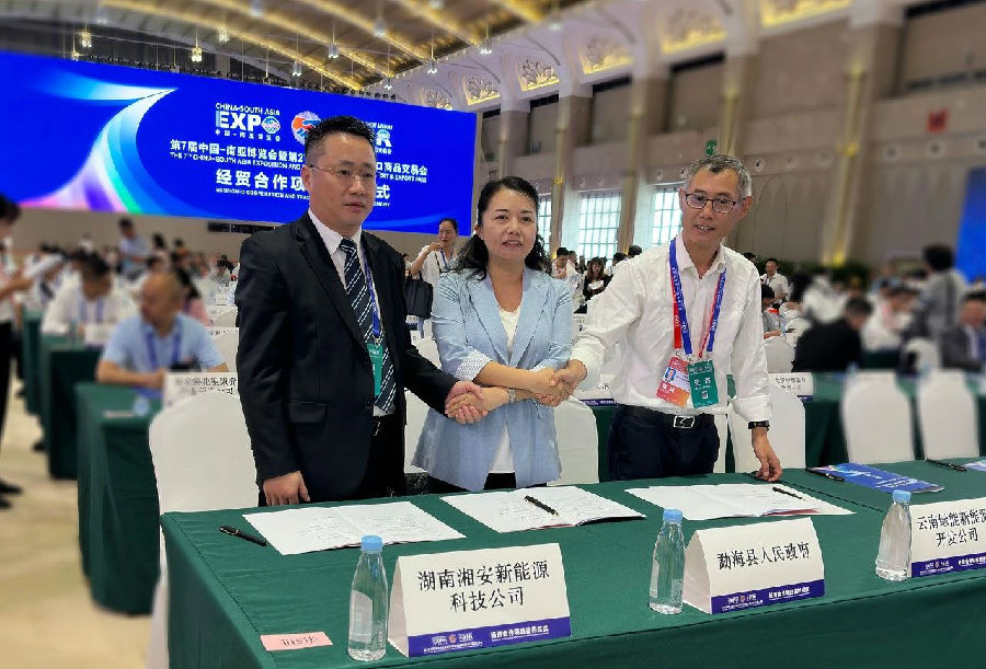 8月17日,在第7屆中國(guó)-南亞博覽會(huì)暨第27屆中國(guó)昆明進(jìn)出口商品交易會(huì)經(jīng)貿(mào)合作項(xiàng)目簽約儀式上,湘安新能源與勐??h人民政府簽約300MW分布式光伏發(fā)電項(xiàng)目,勐??h委副書(shū)...